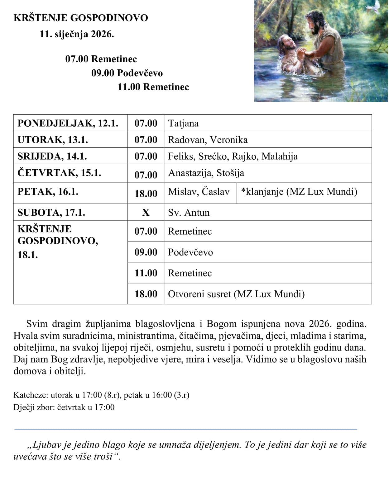 ŽUPNI OGLASI Krštenje Gospodinovo 11. siječnja 2026. X Exit full screen gallery ⇗ Open full size image → Next image 0 of 0 ← Previous image